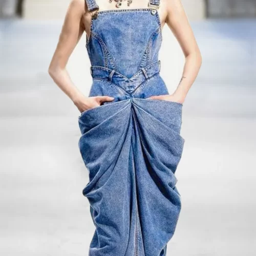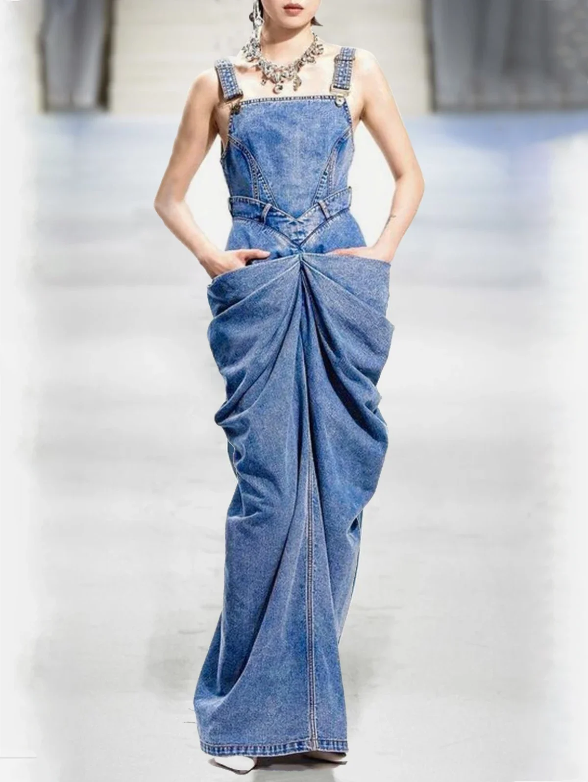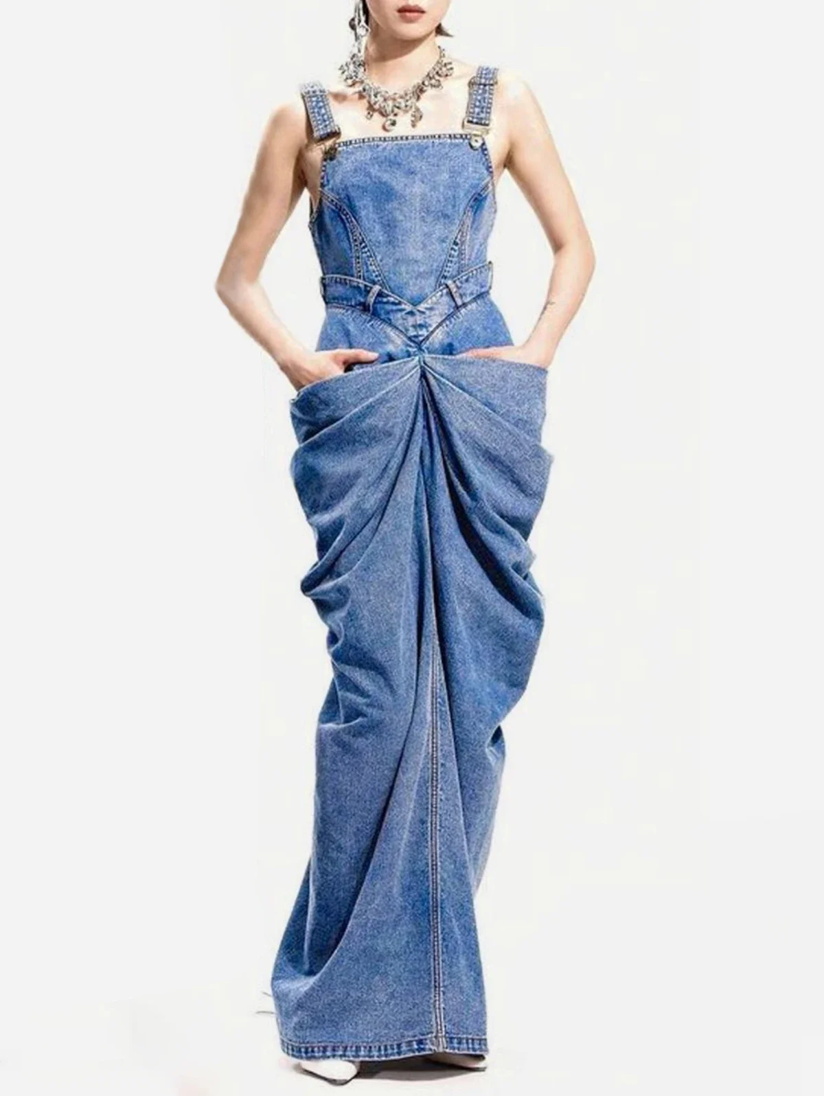 Step into the summer of 2024 with our Fashion Buckle Sleeveless Ruched Design Denim Maxi Dress, a harmonious blend of vintage elegance and contemporary style. This stunning bodycon dress is designed to accentuate your silhouette while providing unmatched comfort and versatility.