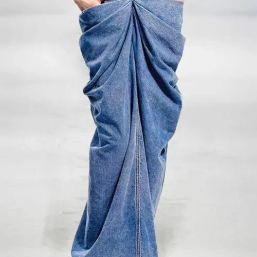 Whether you’re attending a casual brunch, a beachside gathering, or a sophisticated evening event, this denim maxi dress is your go-to choice. Its straight, bodycon silhouette is designed to complement a variety of body types, offering a timeless look that transcends trends.