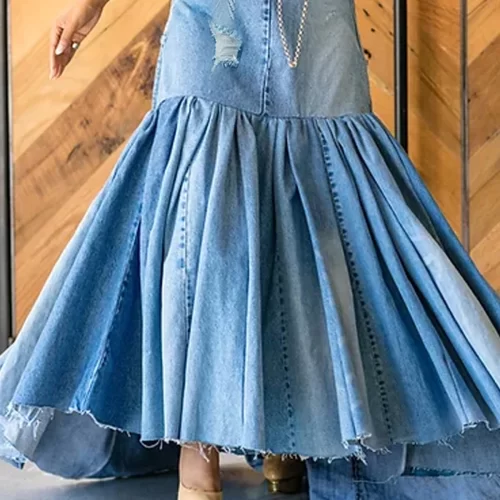 Crafted from high-quality denim, this dress offers a unique blend of durability and comfort. Its swing sundress silhouette flows gracefully, creating a relaxed yet sophisticated look that’s perfect for holidays, casual outings, or even a day out in the city. The loose fit ensures ease of movement, while the mermaid maxi design adds a trendy twist, making you stand out in any crowd.